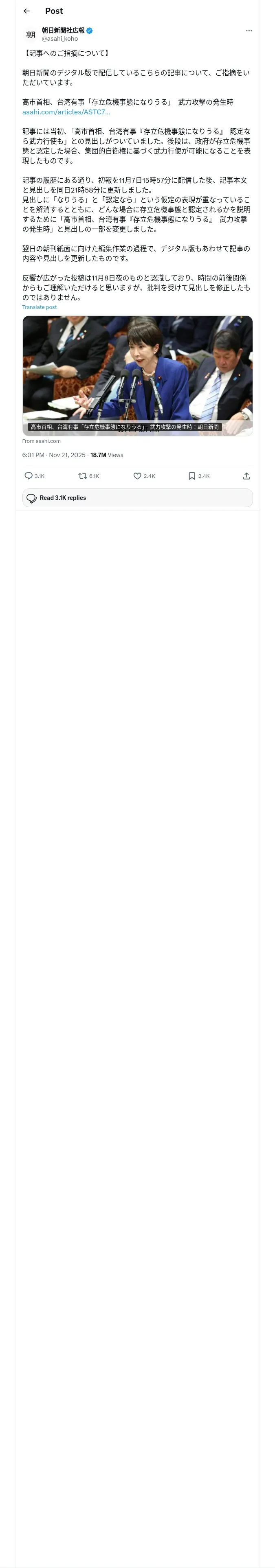 https://x.com:443/asahi_koho/status/1991793969370648745