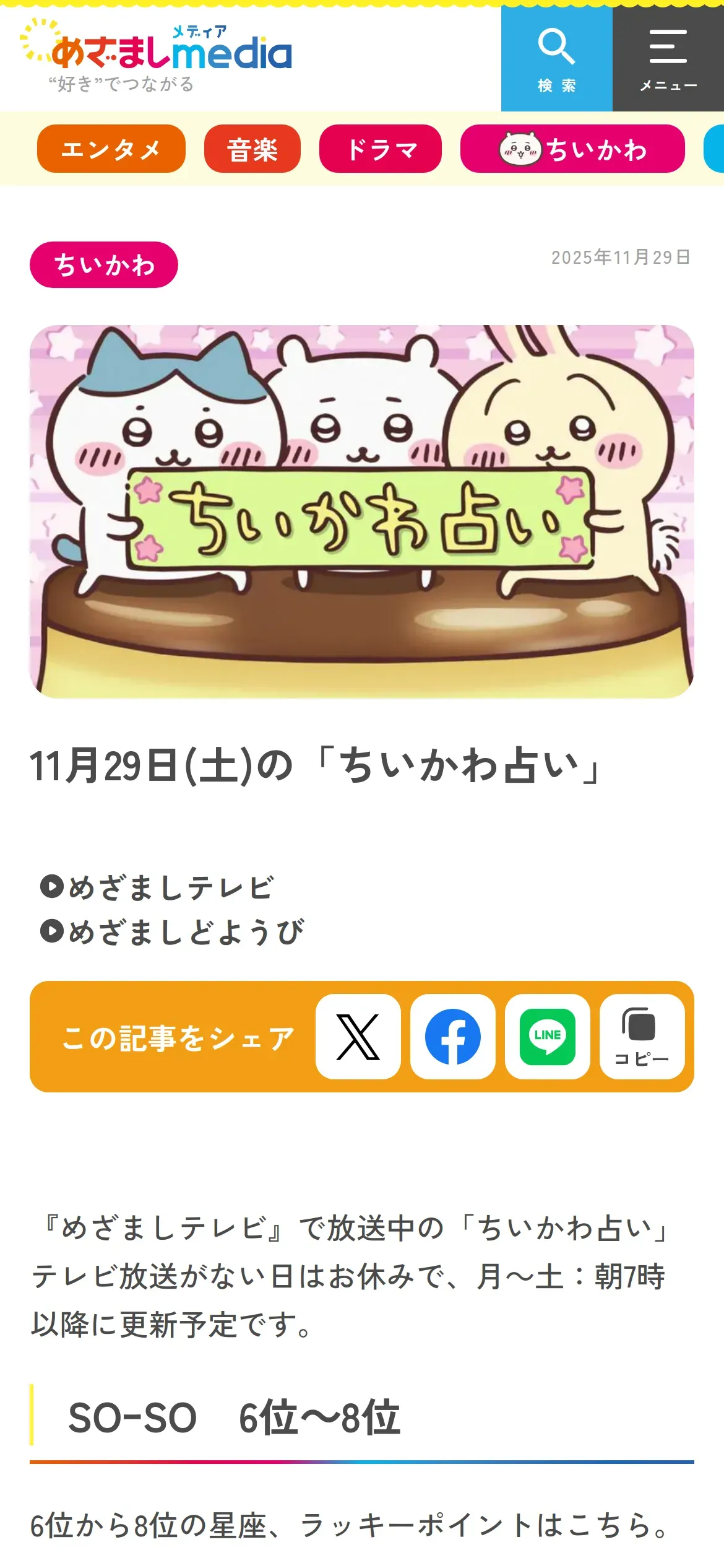 取得元URL: https://mezamashi.media:443/feature/chiikawa-fortune-daily?page=3