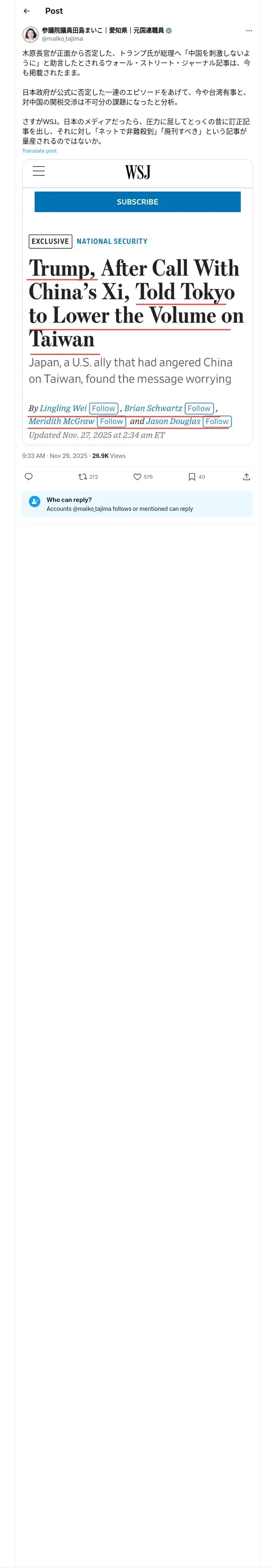https://x.com:443/maiko_tajima/status/1994565469773447584