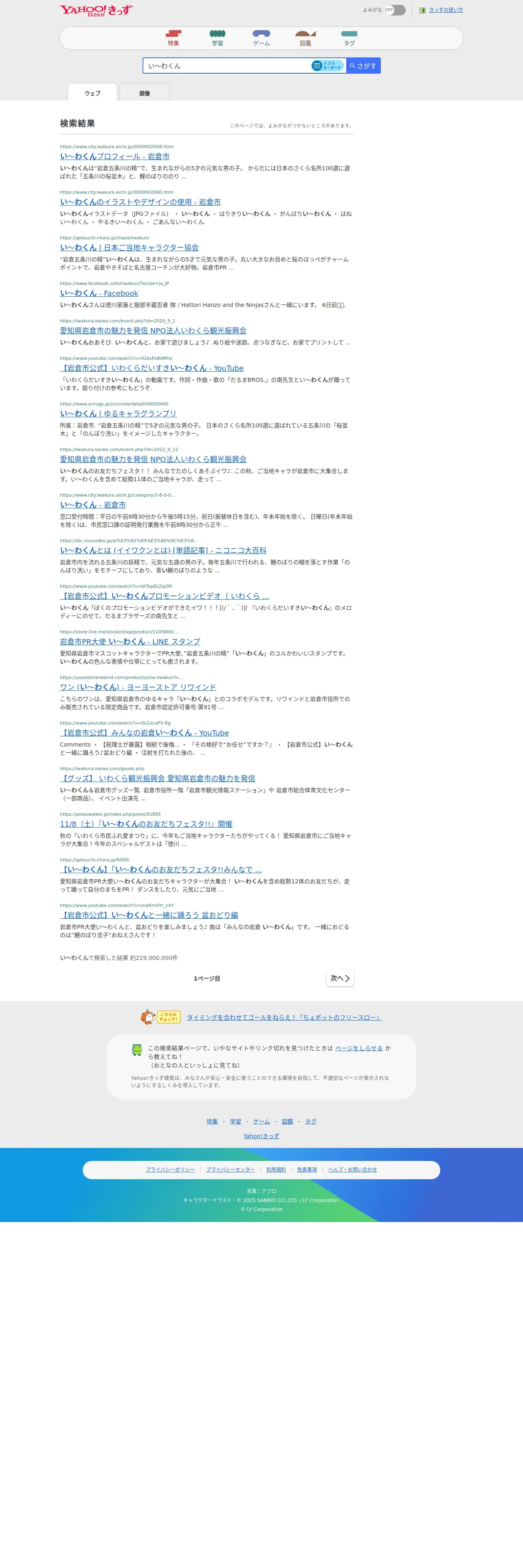 https://kids.yahoo.co.jp:443/search?p=%E3%81%84%EF%BD%9E%E3%82%8F%E3%81%8F%E3%82%93