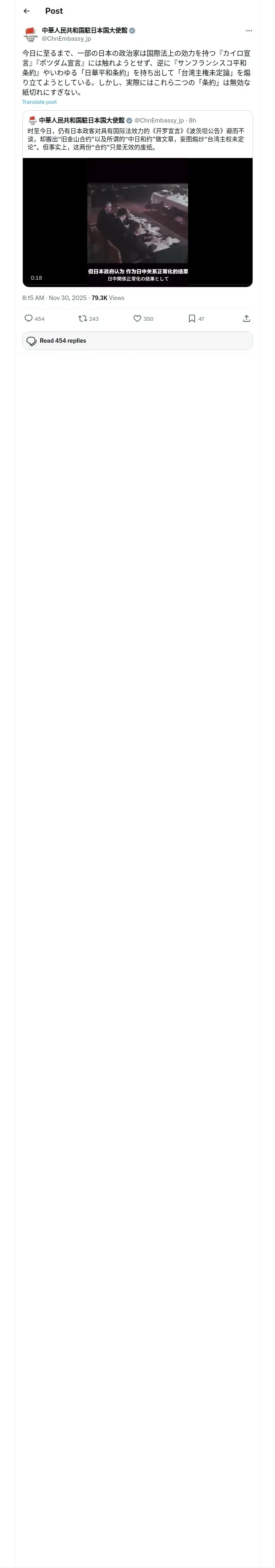 https://x.com:443/ChnEmbassy_jp/status/1994908099204059291