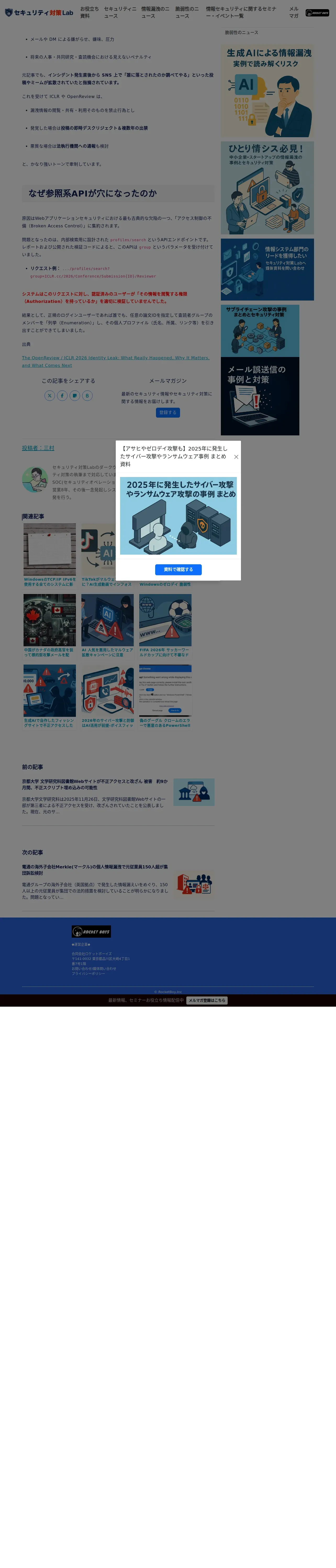 https://rocket-boys.co.jp:443/security-measures-lab/openreview-reviewer-identity-leak-exposes-api-security-gaps/