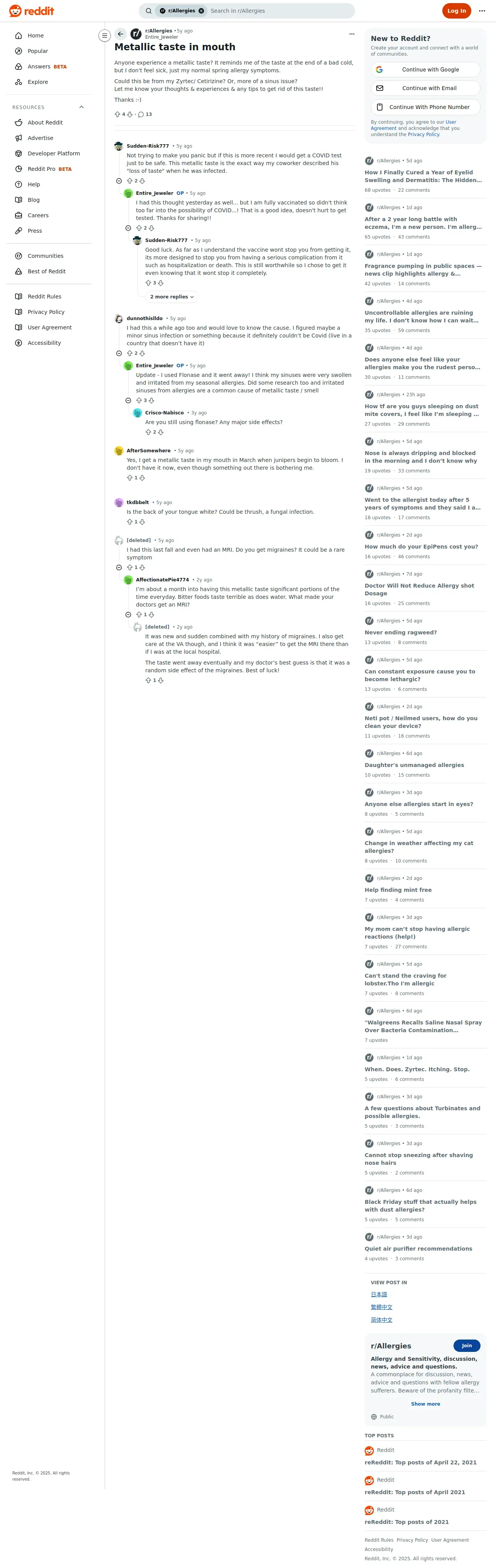 https://www.reddit.com:443/r/Allergies/comments/mwe2ov/metallic_taste_in_mouth/