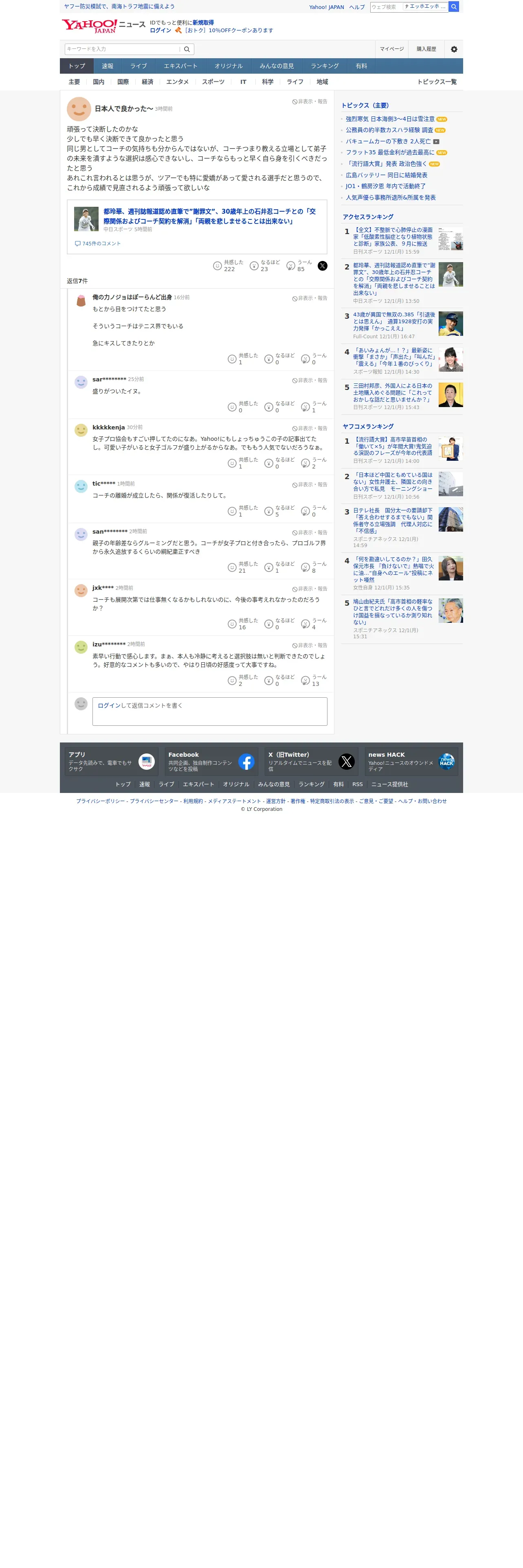 取得元URL: https://news.yahoo.co.jp:443/profile/news/comments/71a63a09-9e15-472e-85e5-45a93203982d