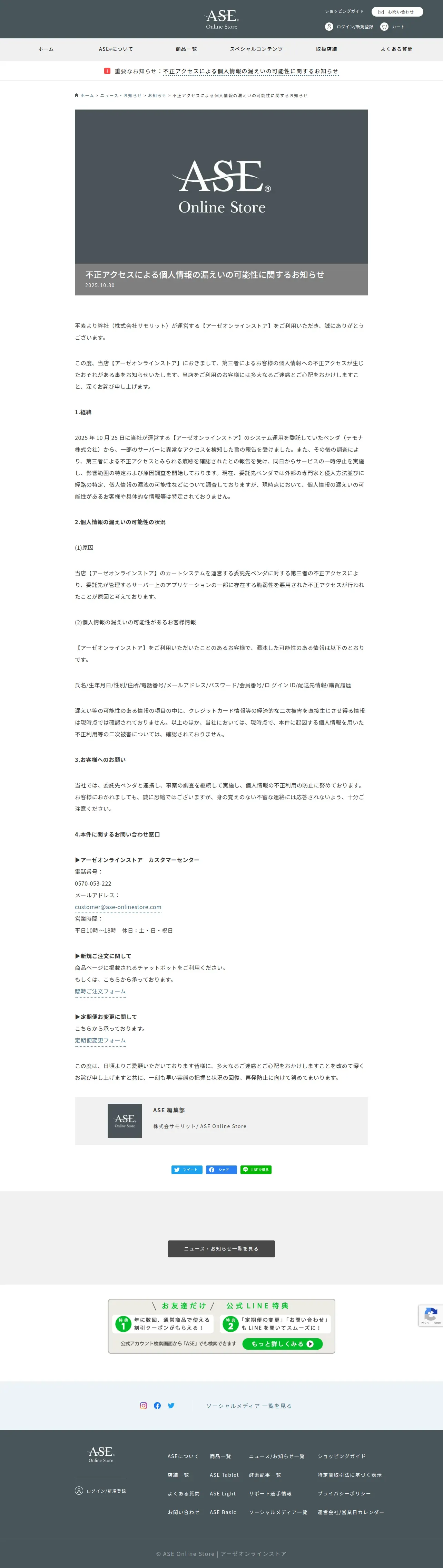 https://ase-onlinestore.com:443/news/info/informationleakage-20251030/