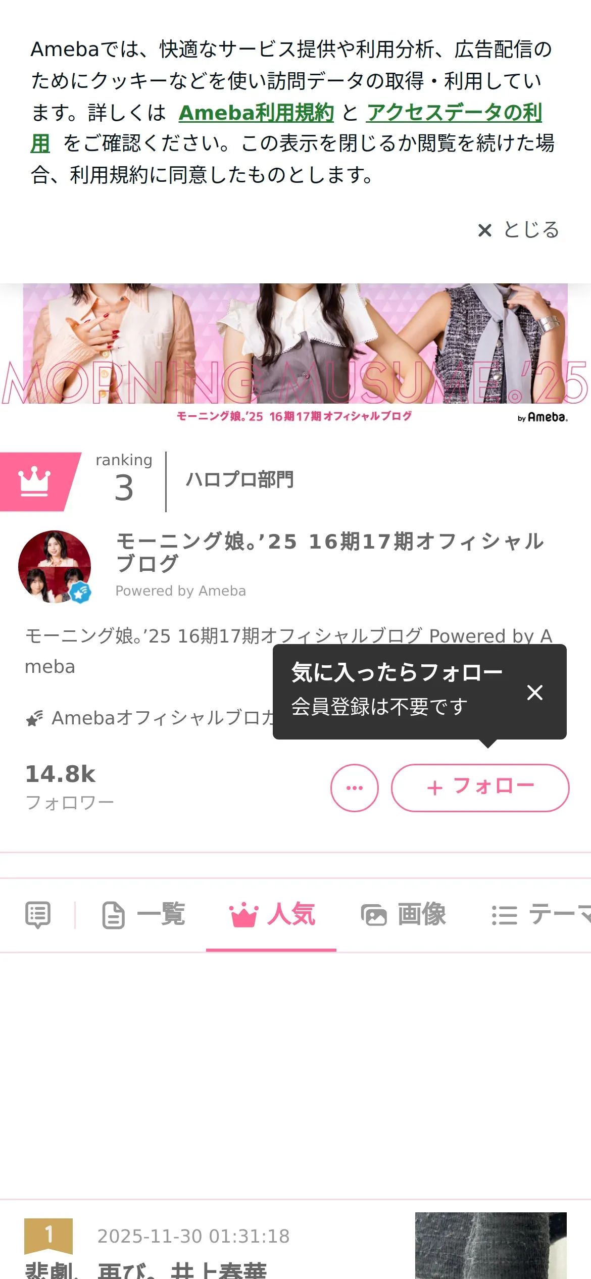 取得元URL: https://ameblo.jp:443/morningmusume16ki/popularrecentlist.html