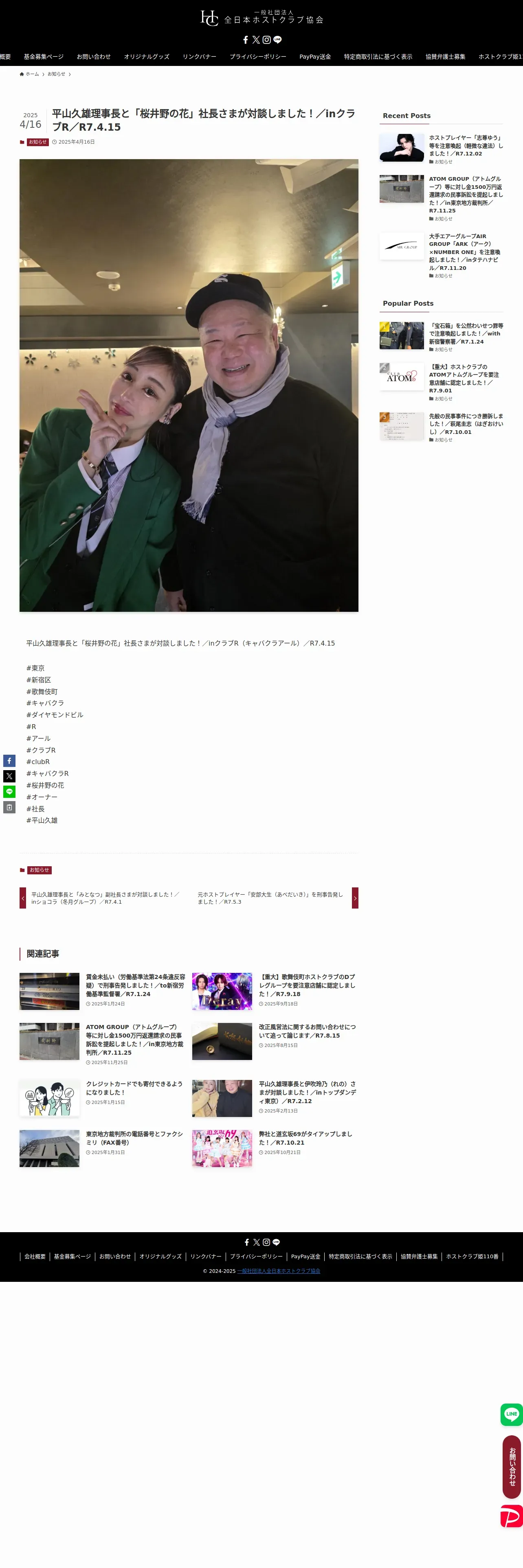 https://host-club.or.jp:443/%E5%B9%B3%E5%B1%B1%E4%B9%85%E9%9B%84%E7%90%86%E4%BA%8B%E9%95%B7%E3%81%A8%E3%80%8C%E6%A1%9C%E4%BA%95%E9%87%8E%E3%81%AE%E8%8A%B1%E3%80%8D%E7%A4%BE%E9%95%B7%E3%81%95%E3%81%BE%E3%81%8C%E5%AF%BE%E8%AB%87/