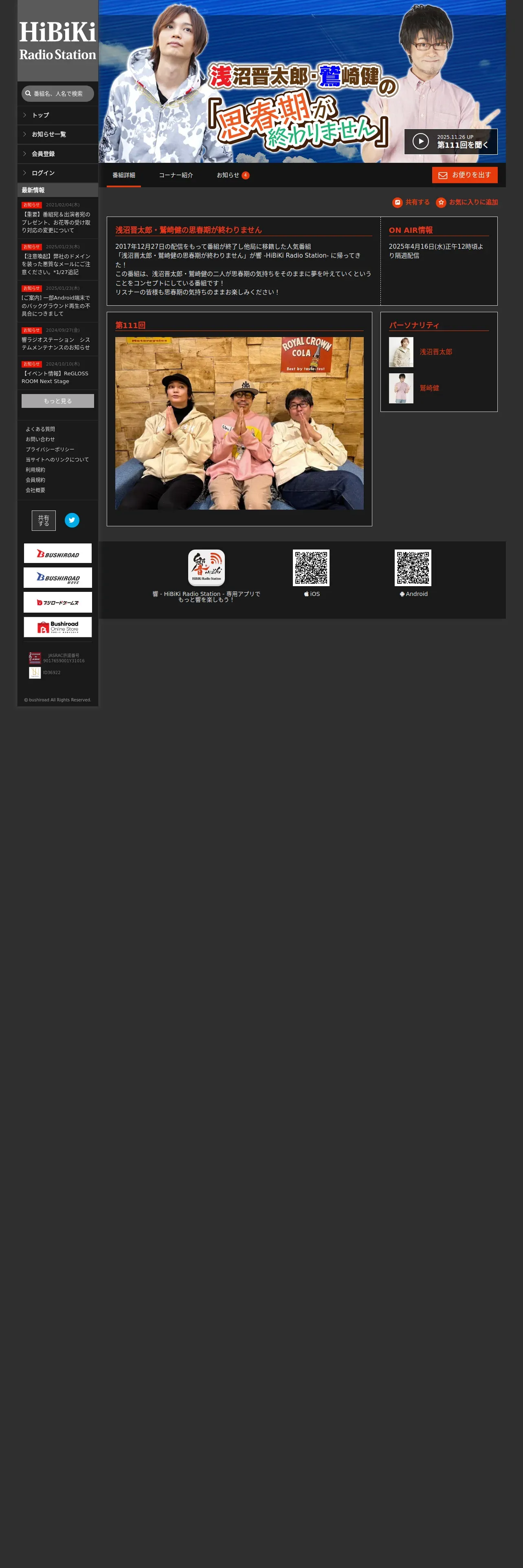 https://hibiki-radio.jp:443/description/shisyunki/detail