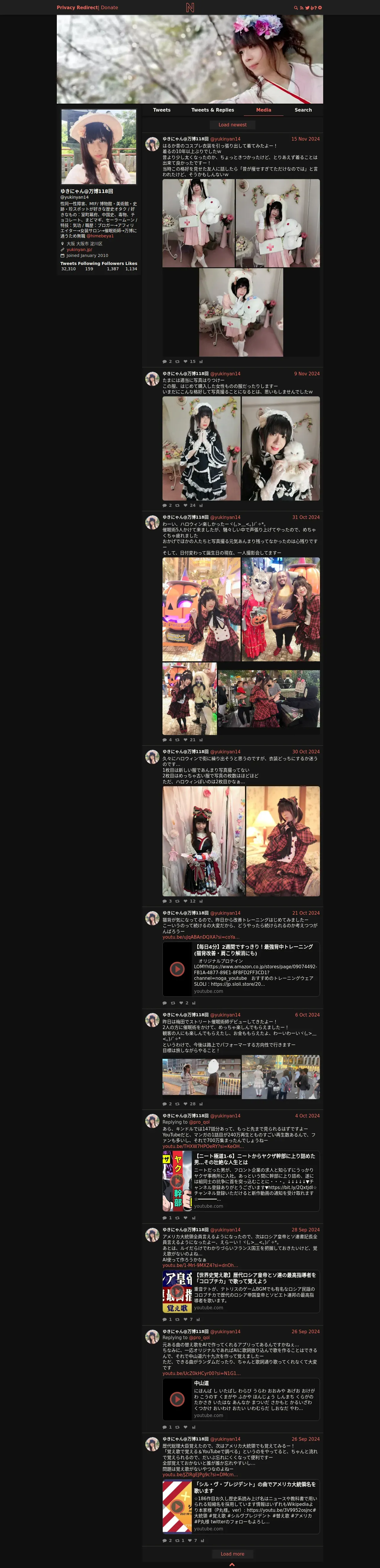 https://nitter.privacyredirect.com:443/yukinyan14/media?cursor=DAABCgABG7R4XhC__3sKAAIZ1lBHbhqBdwgAAwAAAAIAAA