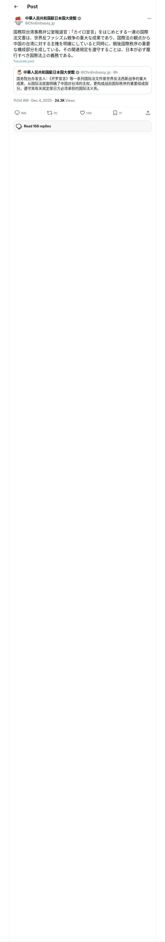 https://x.com:443/ChnEmbassy_jp/status/1996400157798387715?t=09OnY1H5Jc7n4c493Yt2uQ&s=19