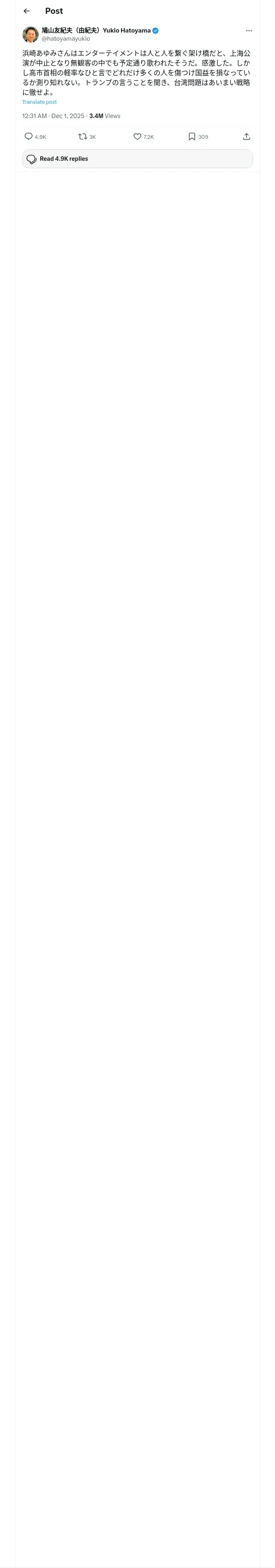 https://x.com:443/hatoyamayukio/status/1995153600742666342