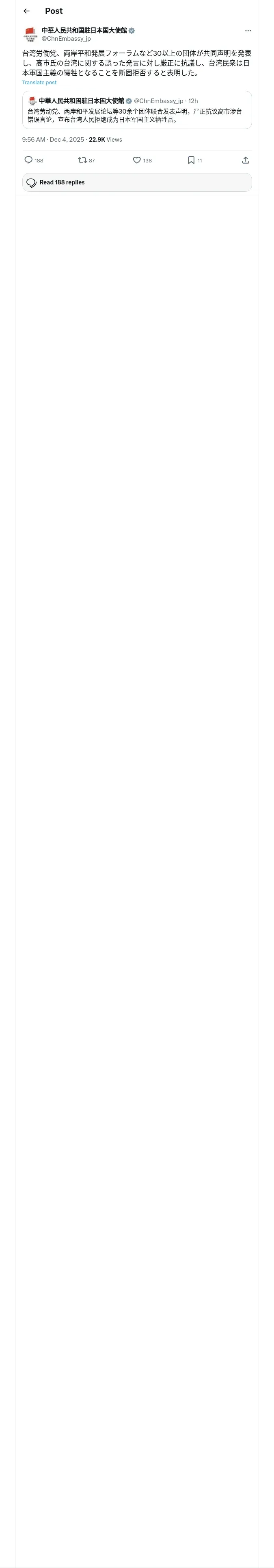 https://x.com:443/ChnEmbassy_jp/status/1996383019192762552?t=odv0cyep9rQTijduM6p1zw&s=19