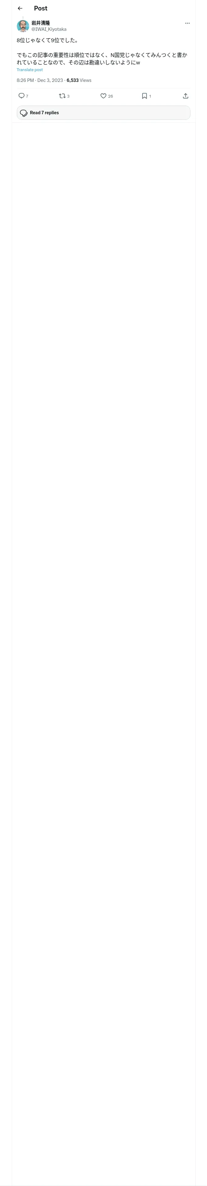 https://x.com:443/IWAI_Kiyotaka/status/1731273687977095253
