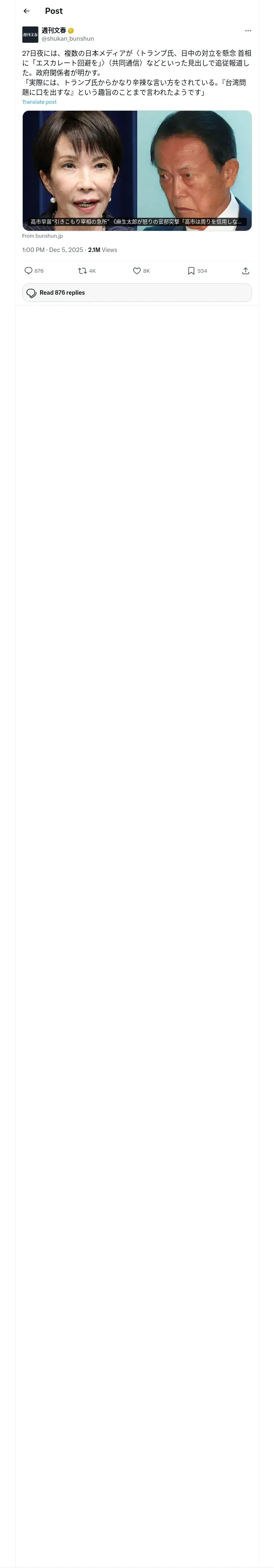 https://x.com:443/shukan_bunshun/status/1996791691110486141