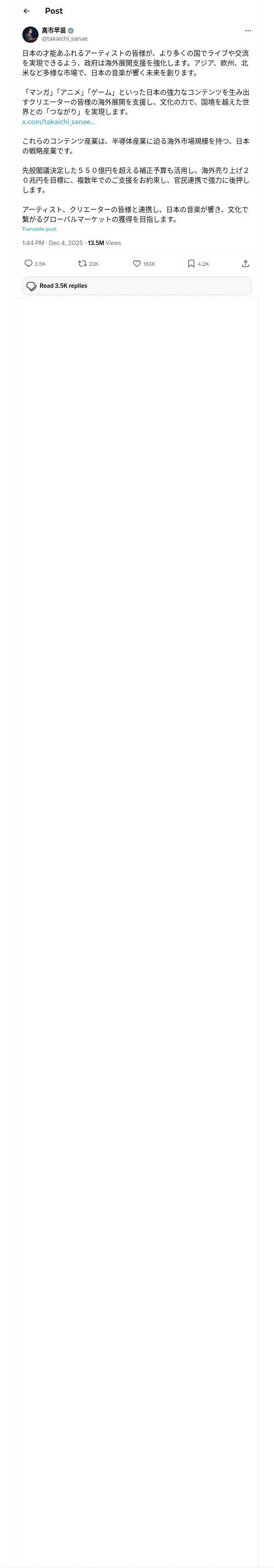 https://x.com:443/takaichi_sanae/status/1996440407404872090