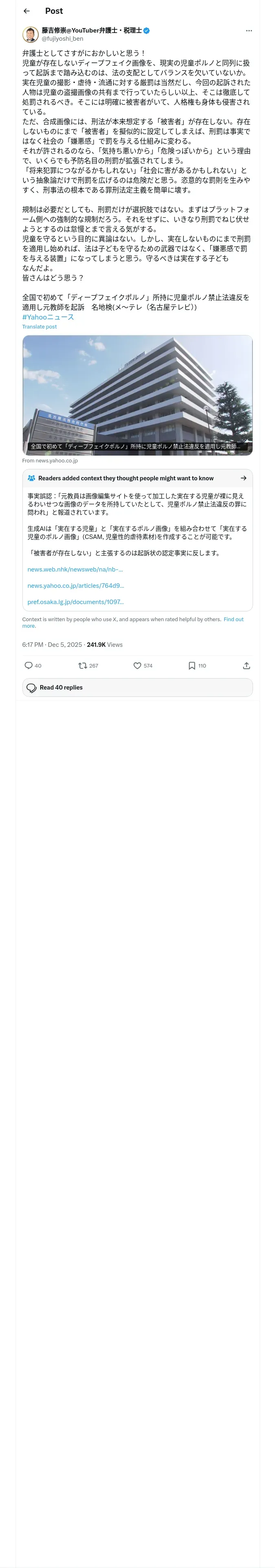 取得元URL: https://x.com:443/fujiyoshi_ben/status/1996871619654951319