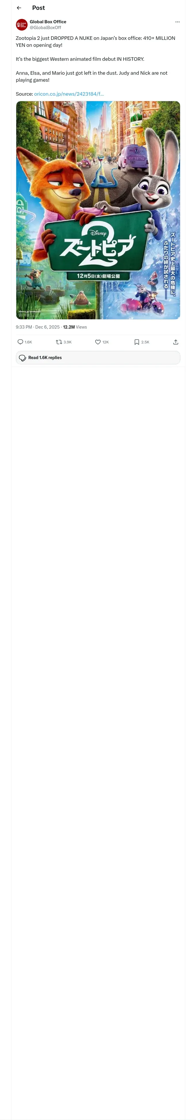 取得元URL: https://x.com:443/GlobalBoxOff/status/1997283164436480496?t=ELm67-EDO3gJUGJmEKSQ6w&s=19