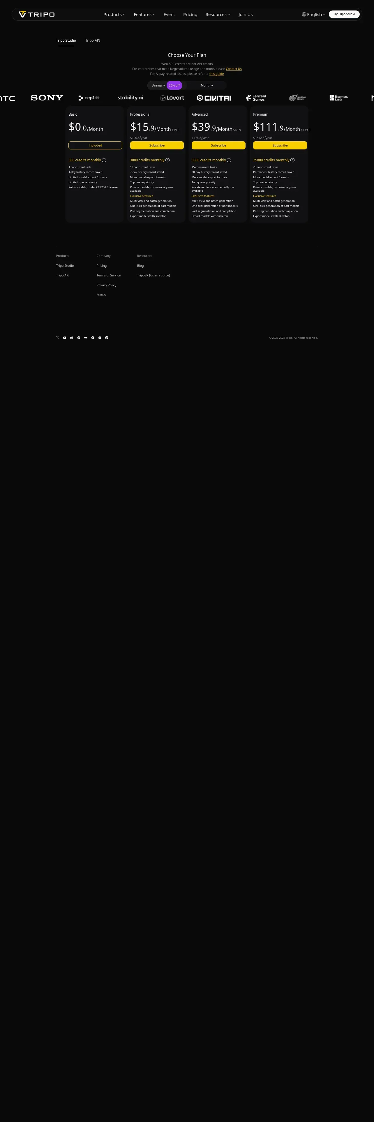 取得元URL: https://www.tripo3d.ai:443/pricing