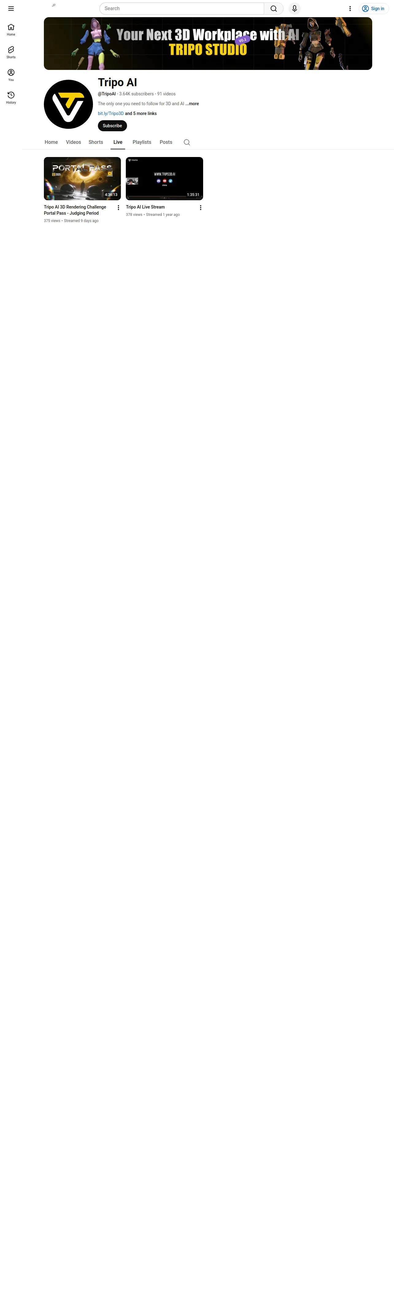 取得元URL: https://www.youtube.com:443/@TripoAI/streams