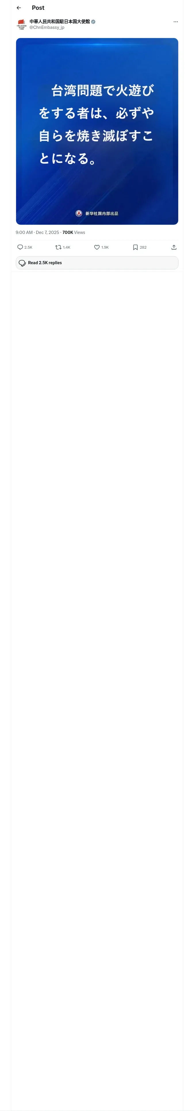 https://x.com:443/ChnEmbassy_jp/status/1997456024261779840?t=R3P2MBkukkyVje1kvpcBlA&s=19