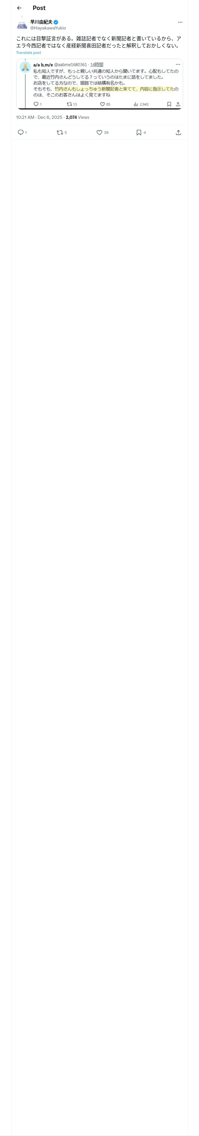 https://x.com:443/HayakawaYukio/status/1997114233918747068