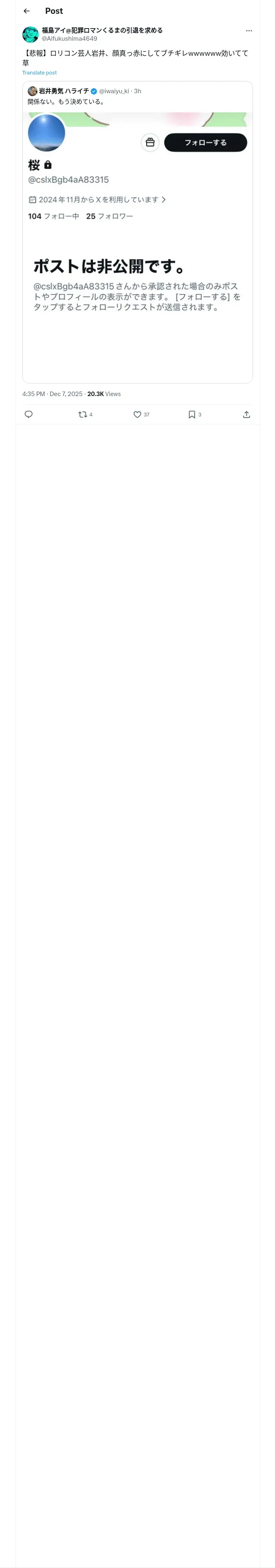 https://x.com:443/Aifukushima4649/status/1997570746814709811