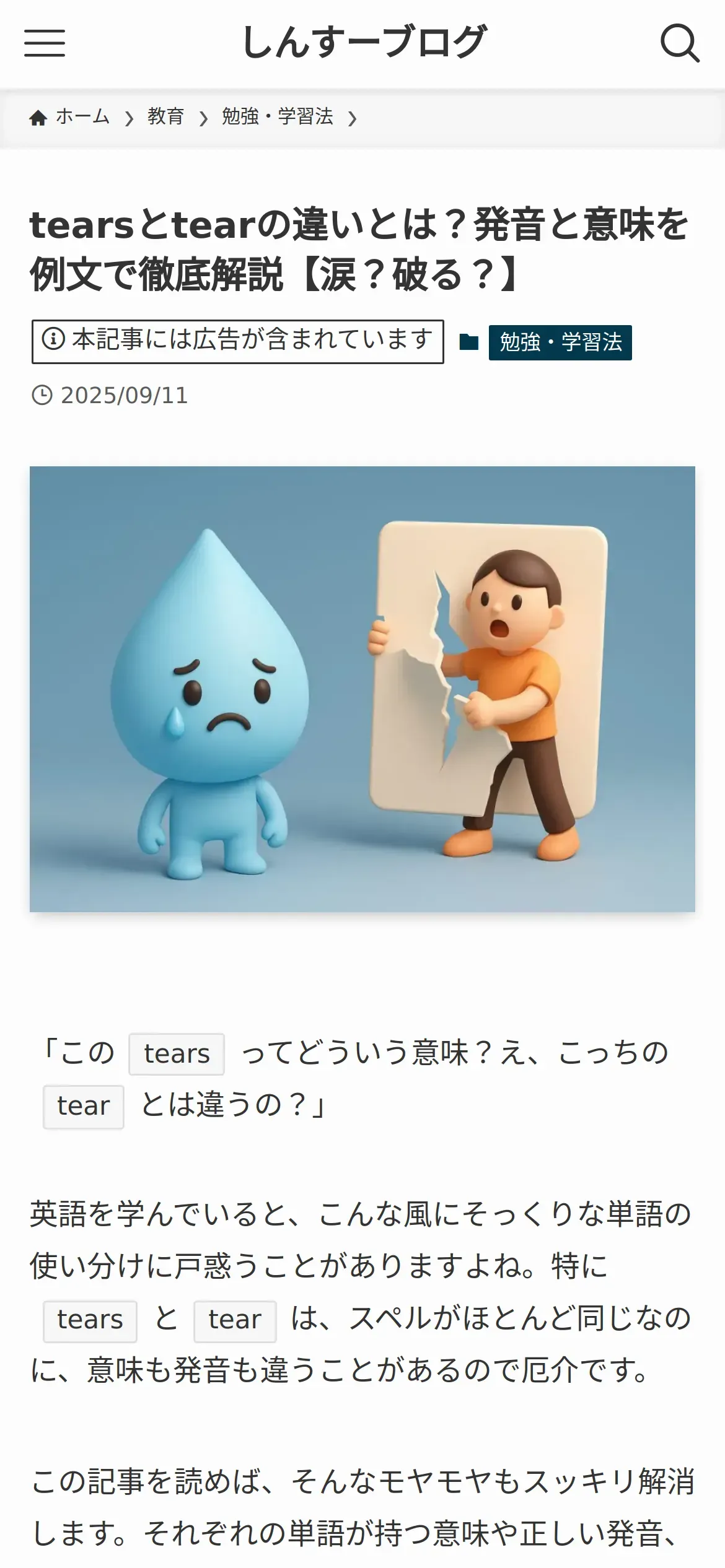 https://shinsu-blog.com:443/tears-tear-difference-meaning-pronunciation/