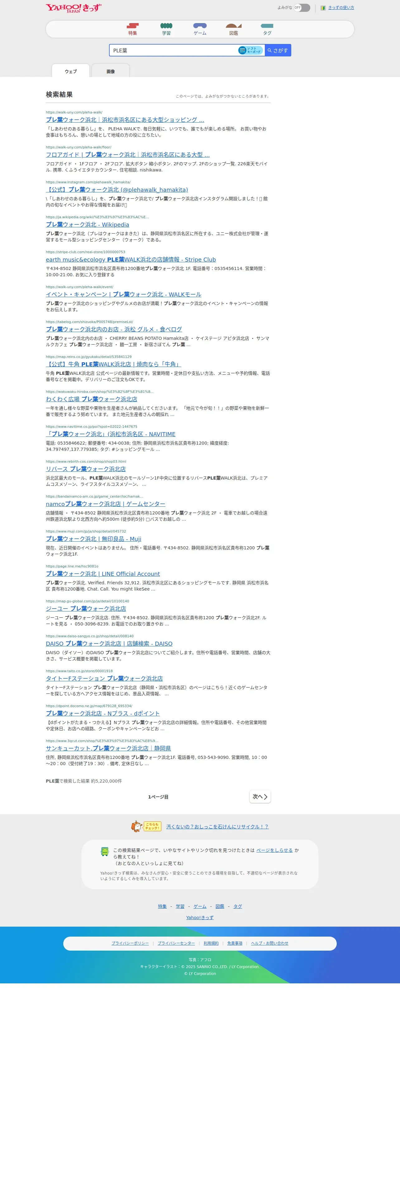https://kids.yahoo.co.jp:443/search?p=PLE%E8%91%89