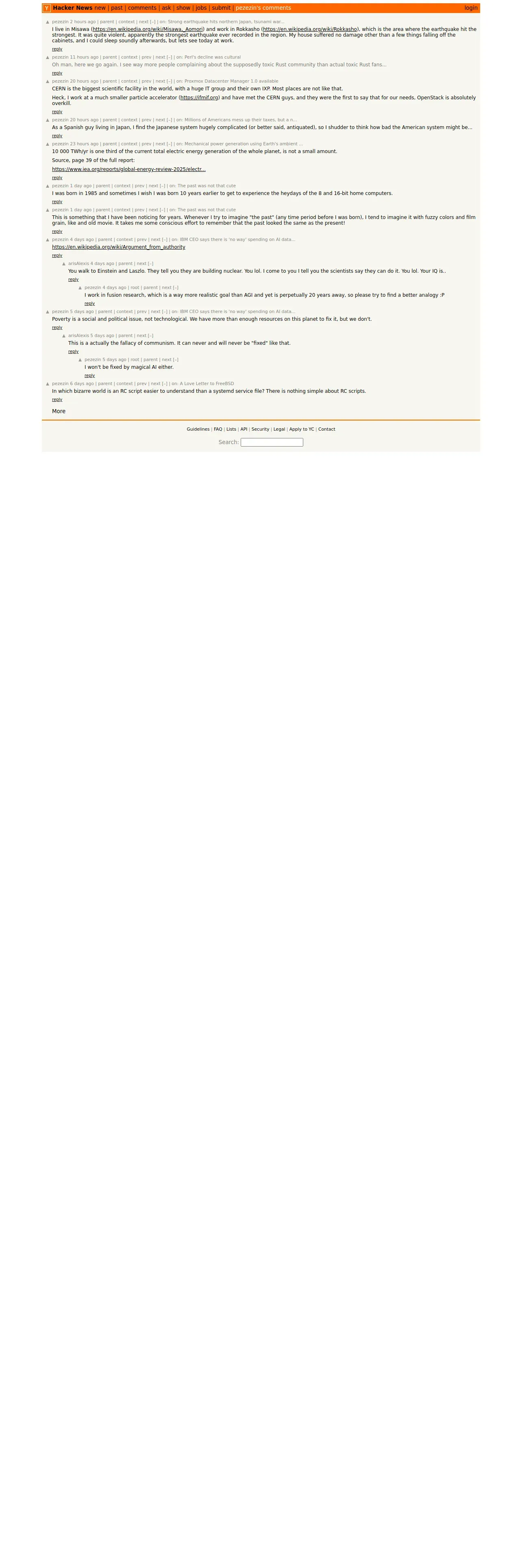 取得元URL: https://news.ycombinator.com:443/threads?id=pezezin