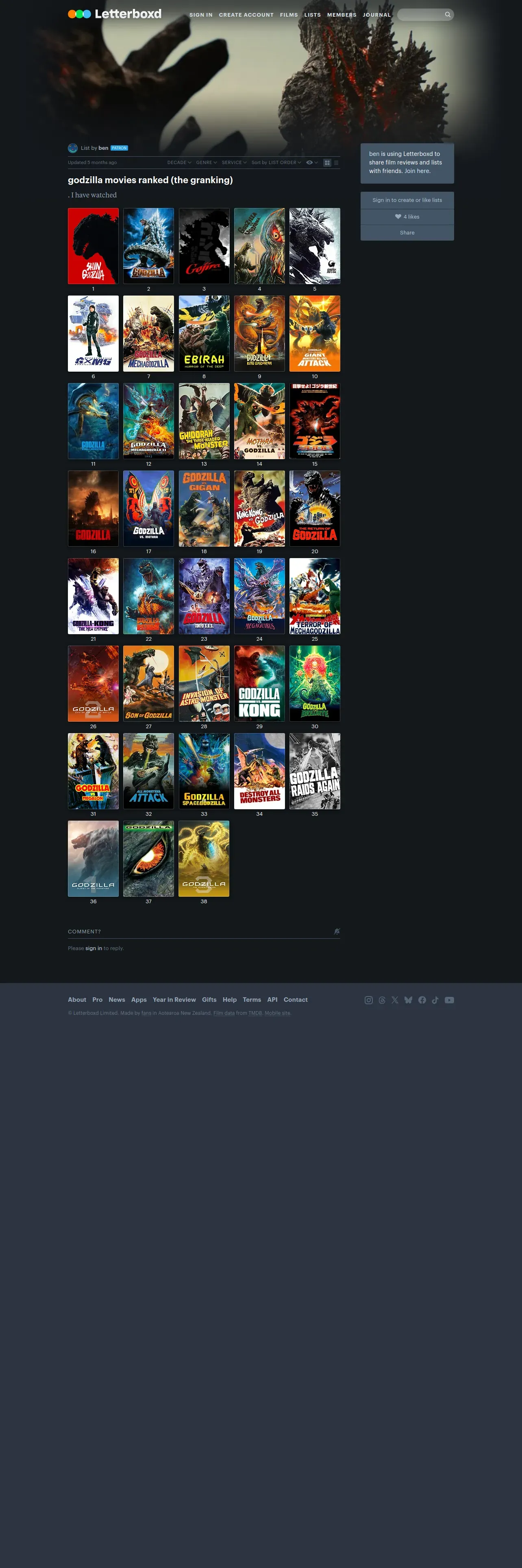 https://letterboxd.com:443/bensillymovies/list/godzilla-movies-ranked-the-granking/