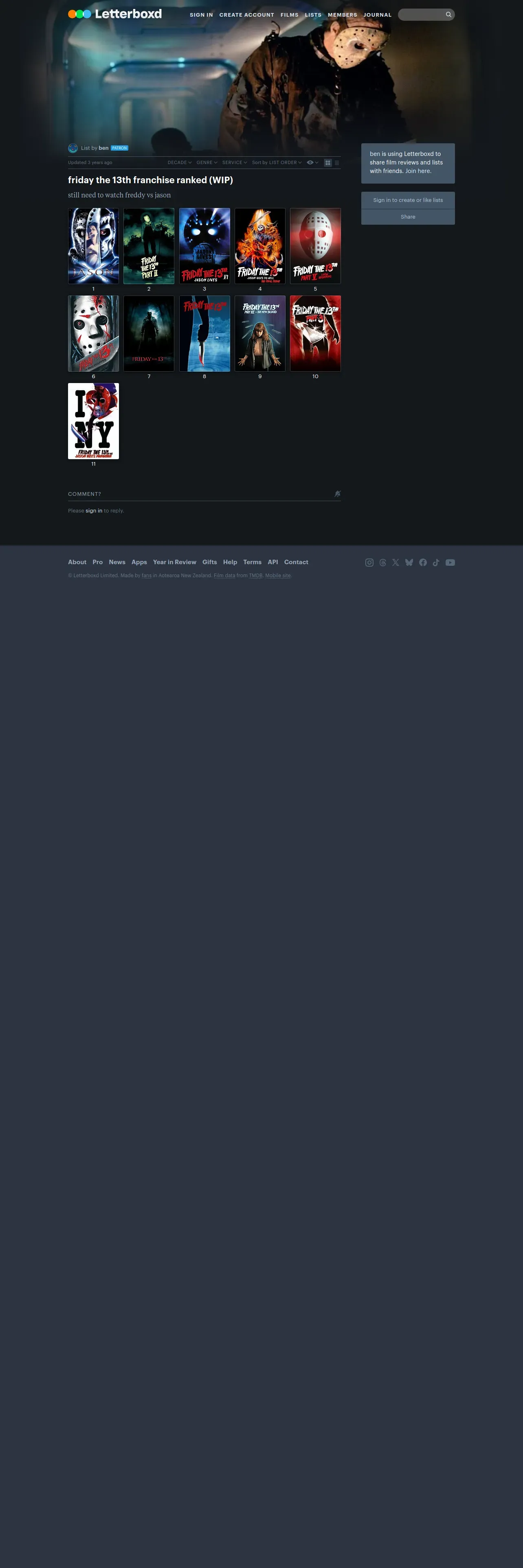 https://letterboxd.com:443/bensillymovies/list/friday-the-13th-franchise-ranked-wip/