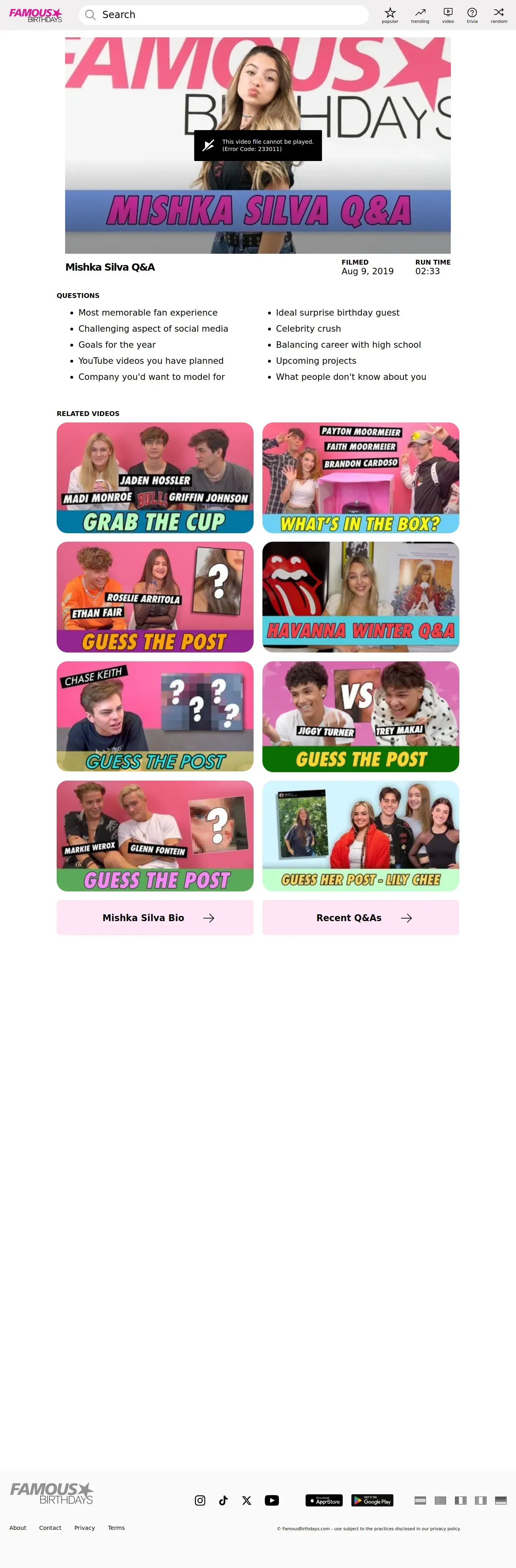 https://www.famousbirthdays.com:443/video/mishka-silva-q-a_31355.html