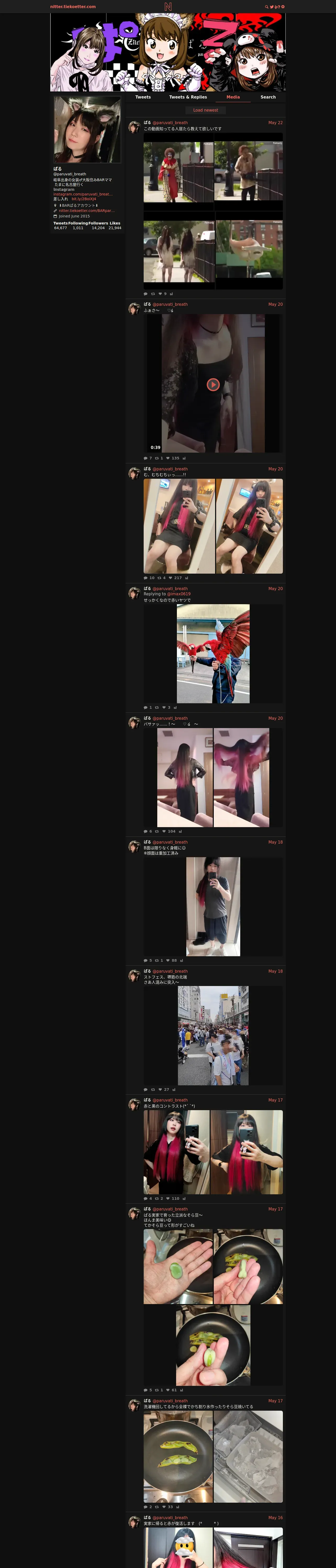 取得元URL: https://nitter.tiekoetter.com:443/paruvati_breath/media?cursor=DAABCgABG7SoS0N__z0KAAIaugdjX1egbAgAAwAAAAIAAA