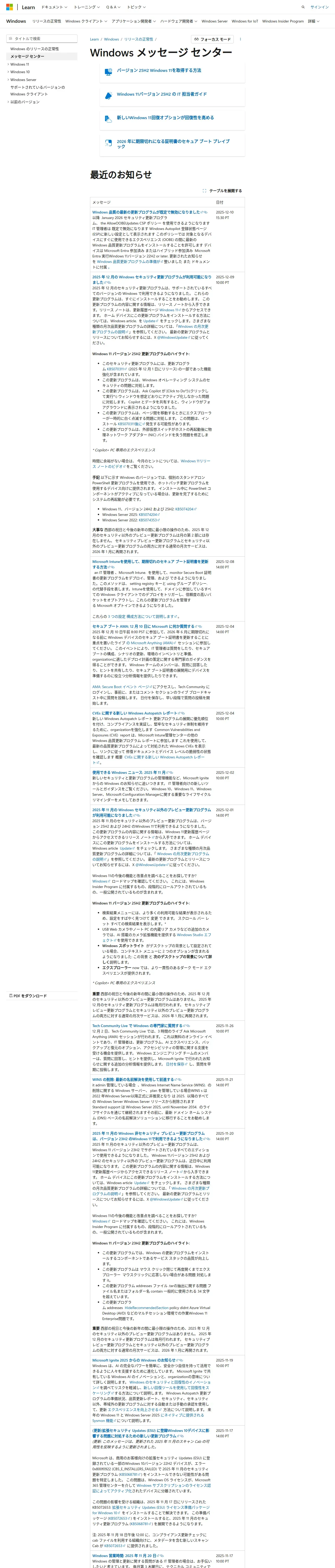 https://learn.microsoft.com:443/ja-jp/windows/release-health/windows-message-center