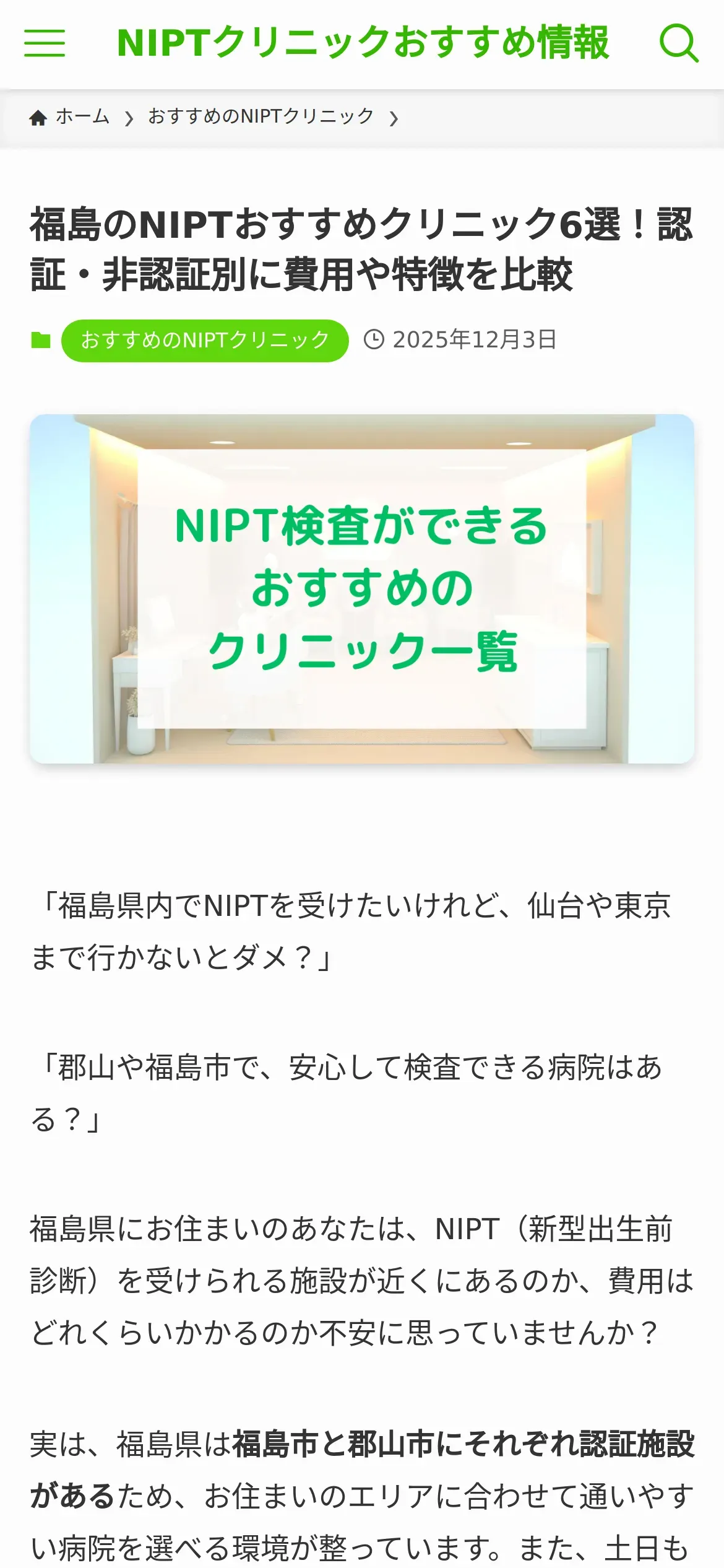 https://nipt-osusume.com:443/nipt-fukushima-clinic-osusume/