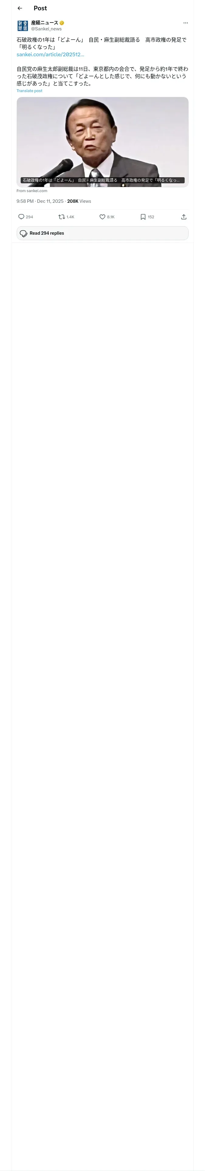 取得元URL: https://x.com:443/Sankei_news/status/1999101475793047869