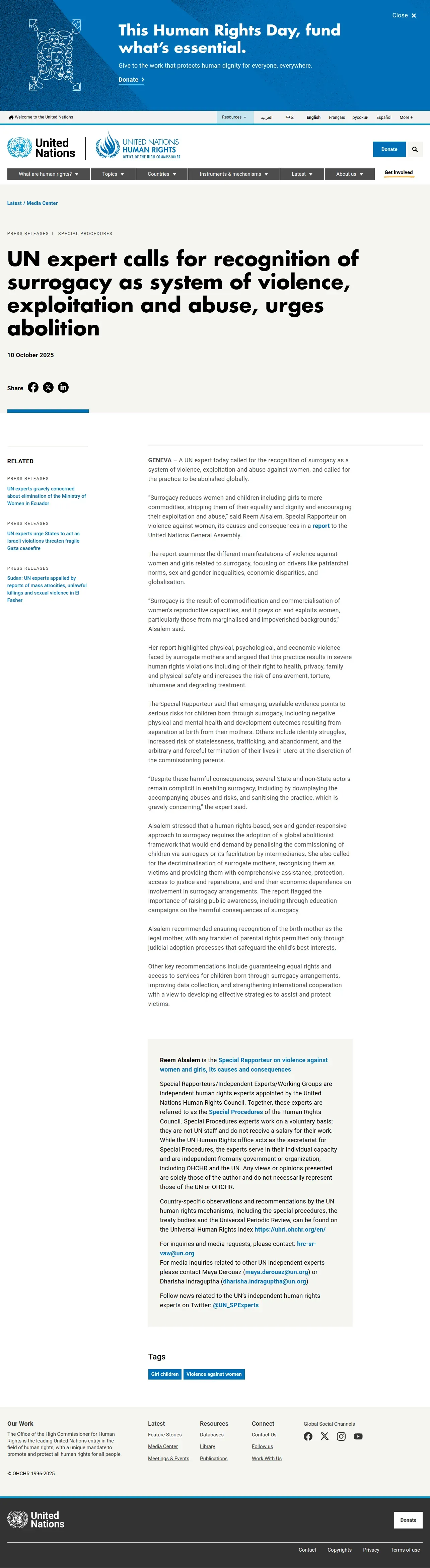 https://www.ohchr.org:443/en/press-releases/2025/10/un-expert-calls-recognition-surrogacy-system-violence-exploitation-and-abuse