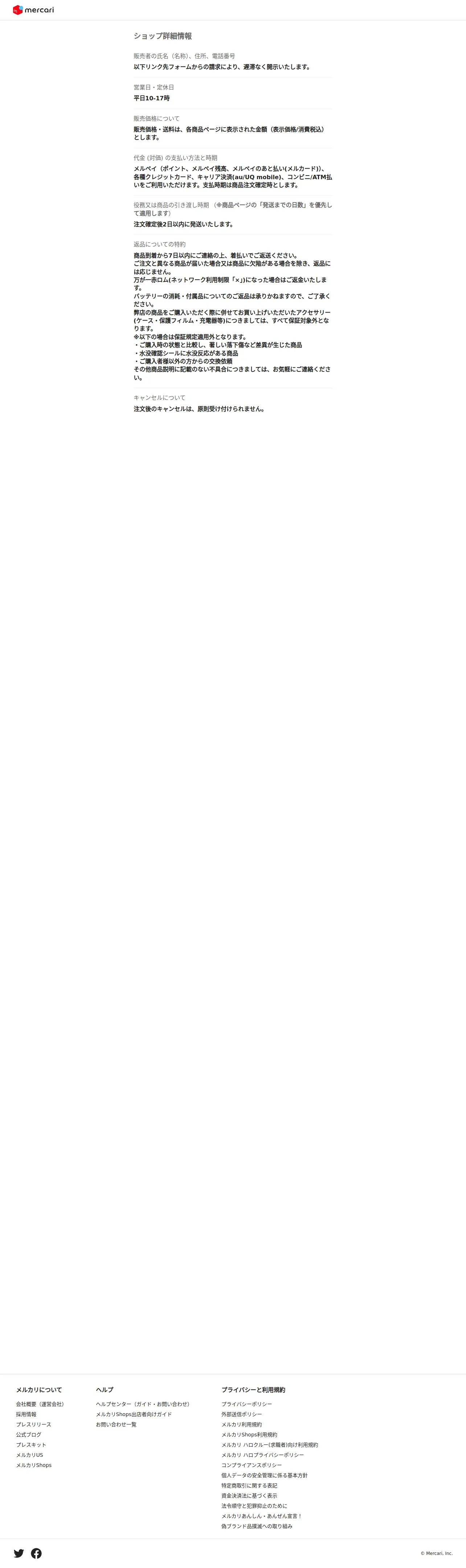 https://mercari-shops.com:443/shops/2JGp4SxouzLobYabLtoie4/details