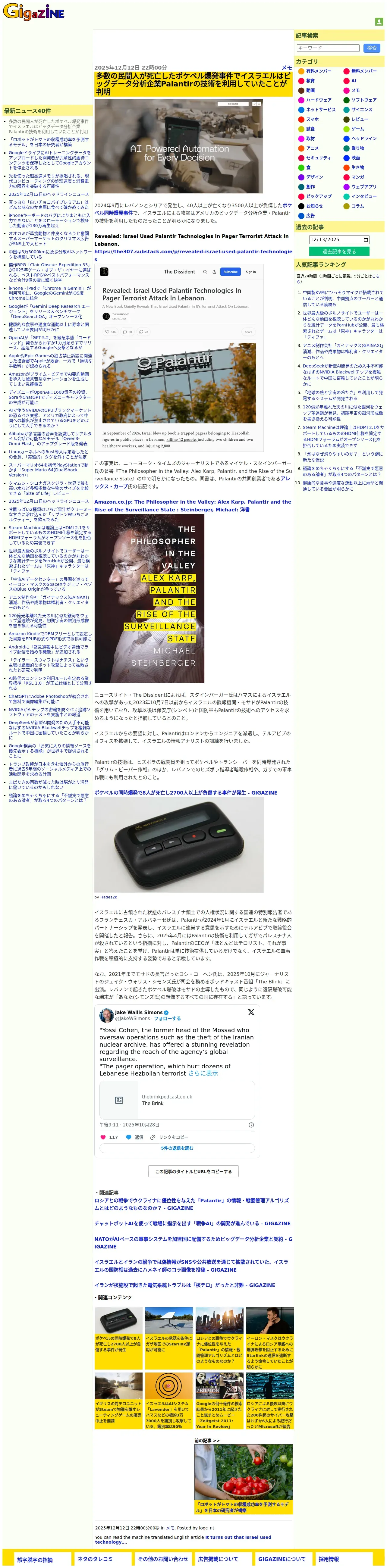 https://gigazine.net:443/news/20251212-israel-used-palantir-technology-in-lebanon-attack/