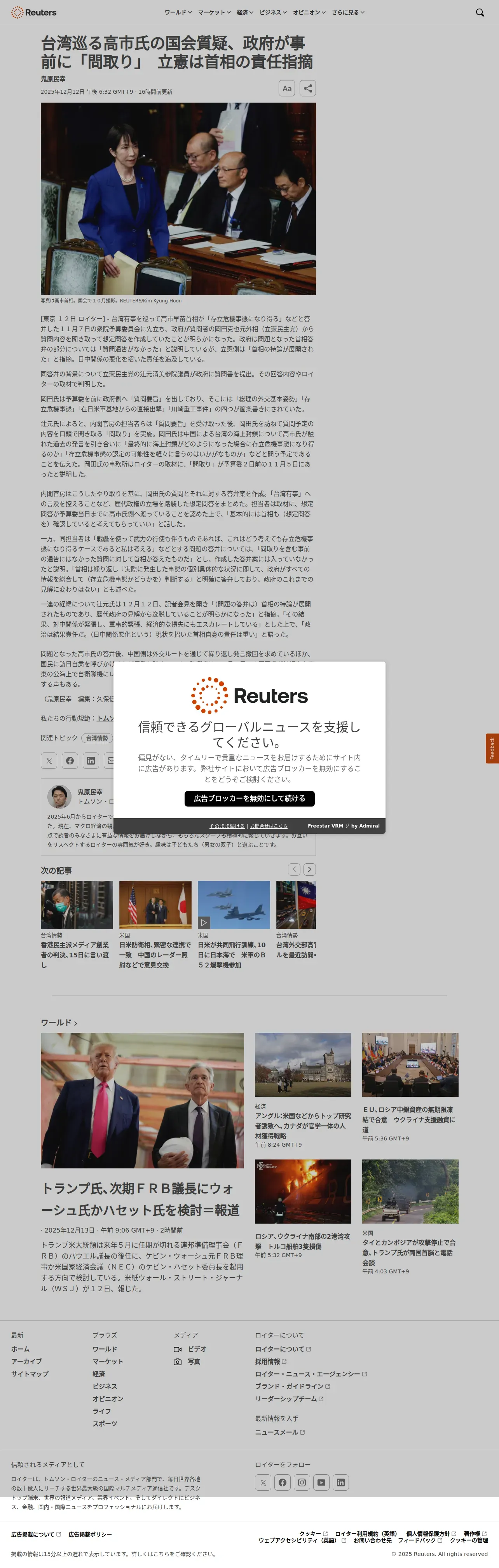 取得元URL: https://jp.reuters.com:443/world/taiwan/Z25DXU2WARN5LMGUVY3ITTBZWA-2025-12-12/
