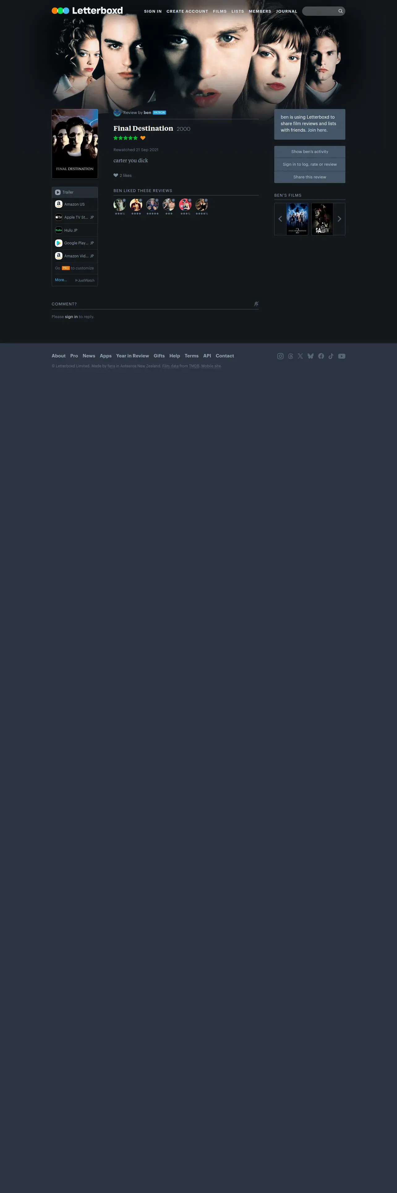 取得元URL: https://letterboxd.com:443/bensillymovies/film/final-destination/0/