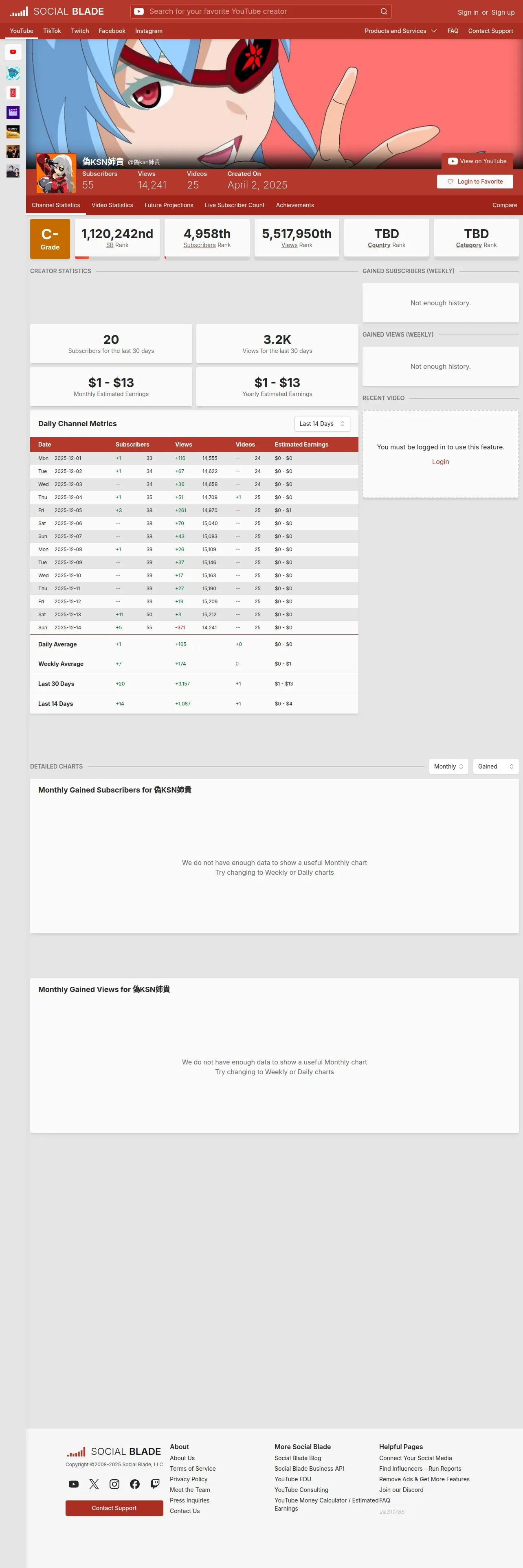 取得元URL: https://socialblade.com:443/youtube/channel/UCrvtzlEEXN-s7uAddp-AglQ