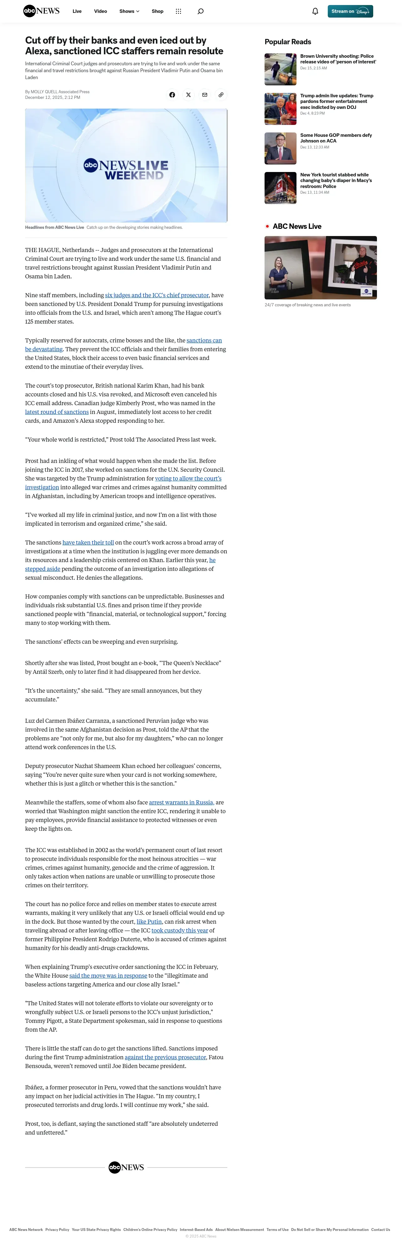 https://abcnews.go.com:443/Business/wireStory/cut-off-banks-iced-alexa-sanctioned-icc-staffers-128335932