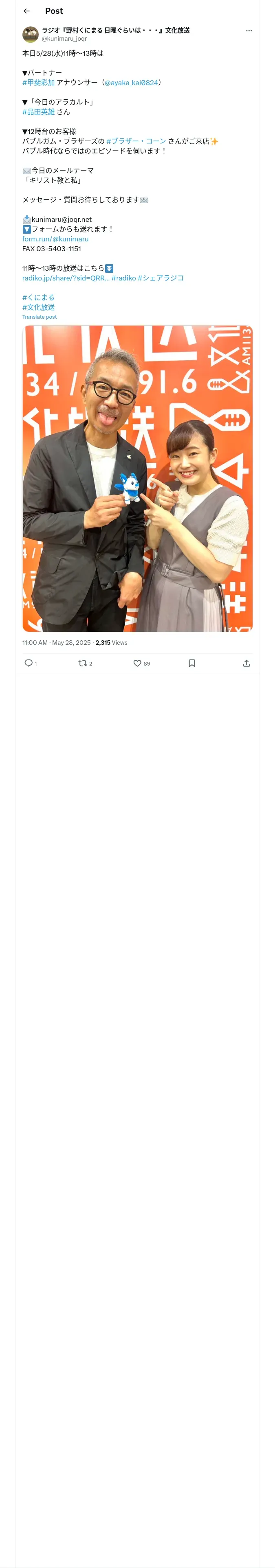 https://x.com:443/kunimaru_joqr/status/1927545583117402259