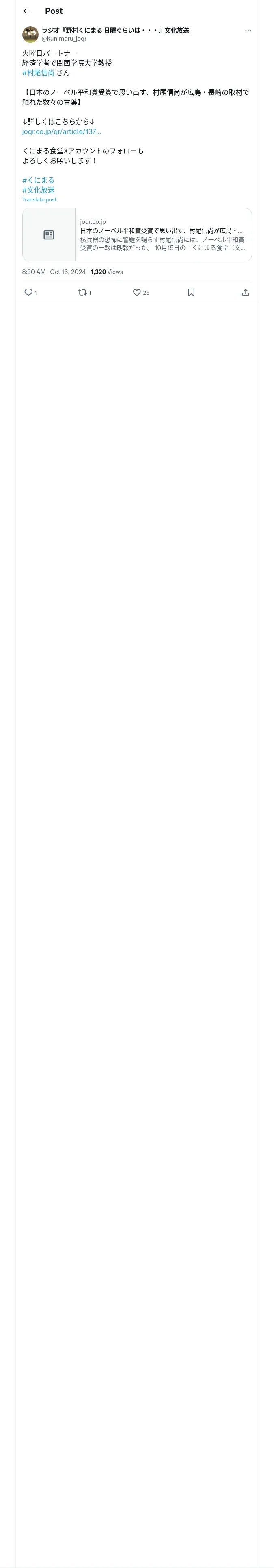 https://x.com:443/kunimaru_joqr/status/1846332829946597435