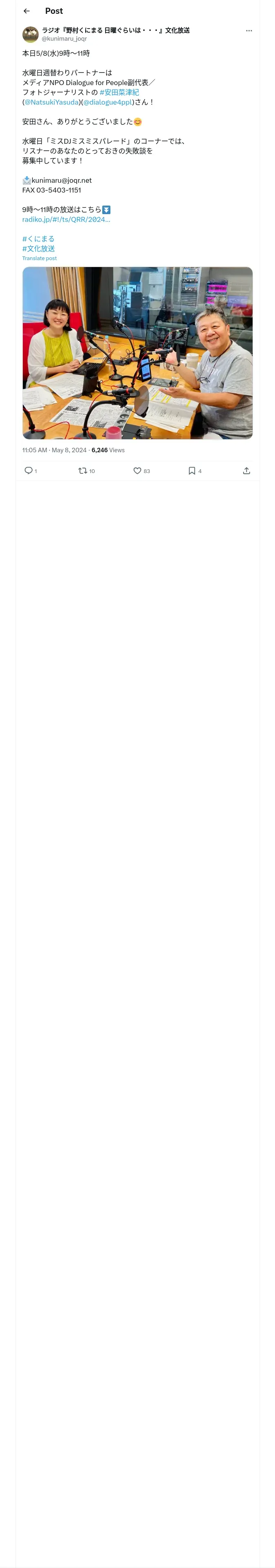 https://x.com:443/kunimaru_joqr/status/1788027519918285247