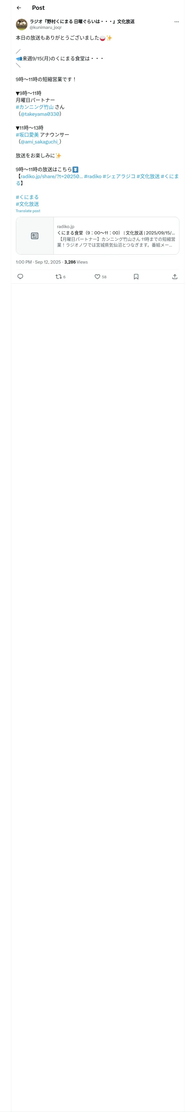 https://x.com:443/kunimaru_joqr/status/1966351066091692092