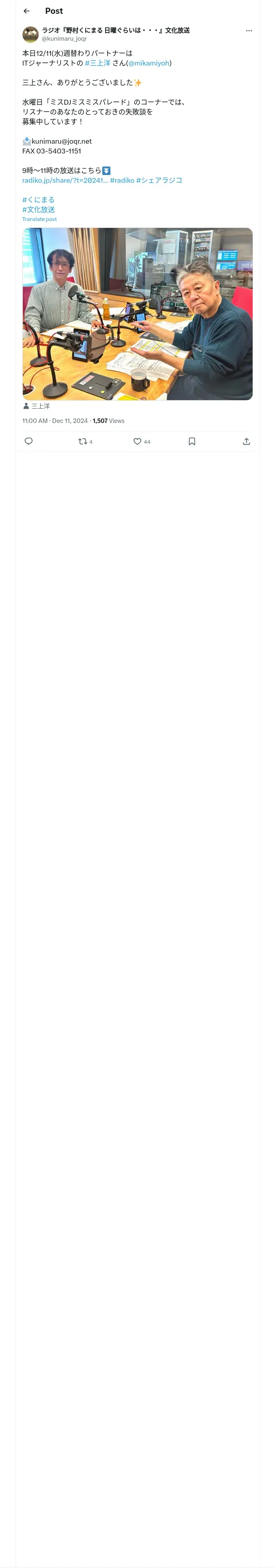https://x.com:443/kunimaru_joqr/status/1866664415011143817