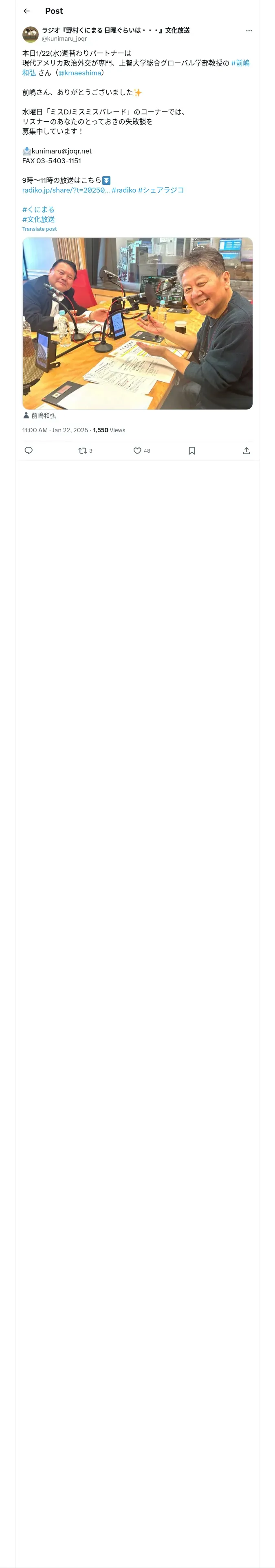https://x.com:443/kunimaru_joqr/status/1881884565280788508