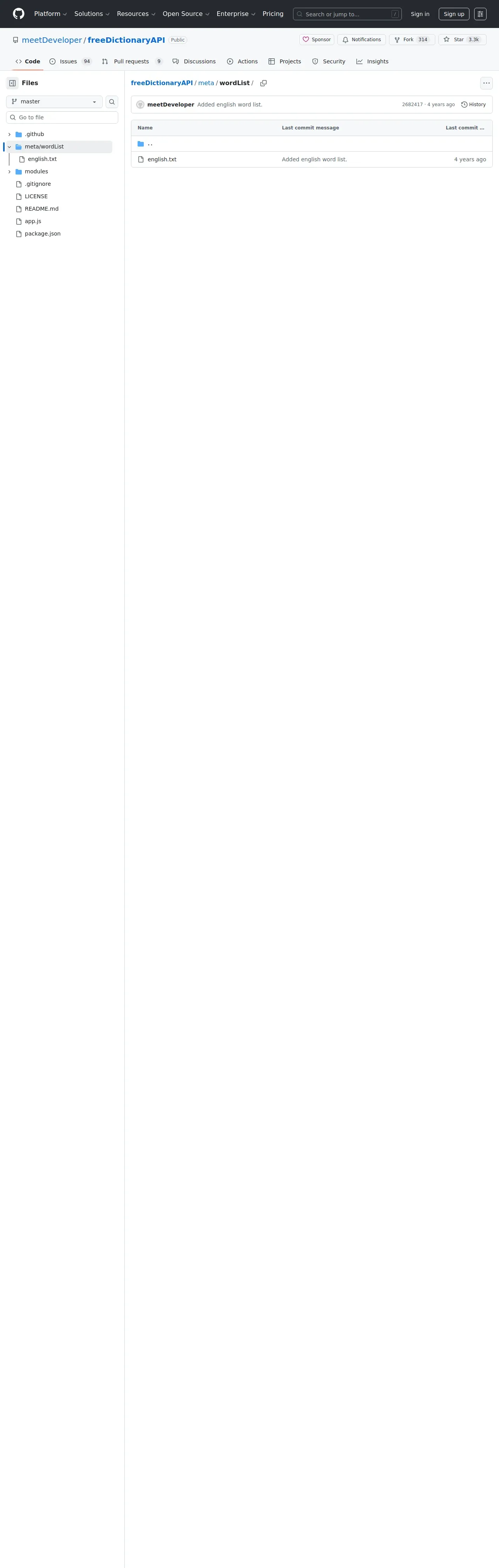 https://github.com:443/meetDeveloper/freeDictionaryAPI/tree/master/meta/wordList
